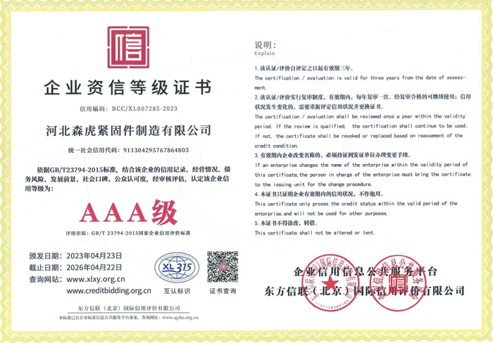 河北森虎緊固件制造有限公司成立于2011年,是建廠較早的緊固件企業。西臨京廣線,東臨京深高速,地理位置優越,交通便利。 主要生產:化學錨栓、機械錨栓、定型化學錨栓、高強度8.8級化學錨栓、自切底機械錨栓、車修壁虎,膨脹螺栓,植筋膠。 質量方針:先進技術、科學管理、優良品質、用戶滿意; ...